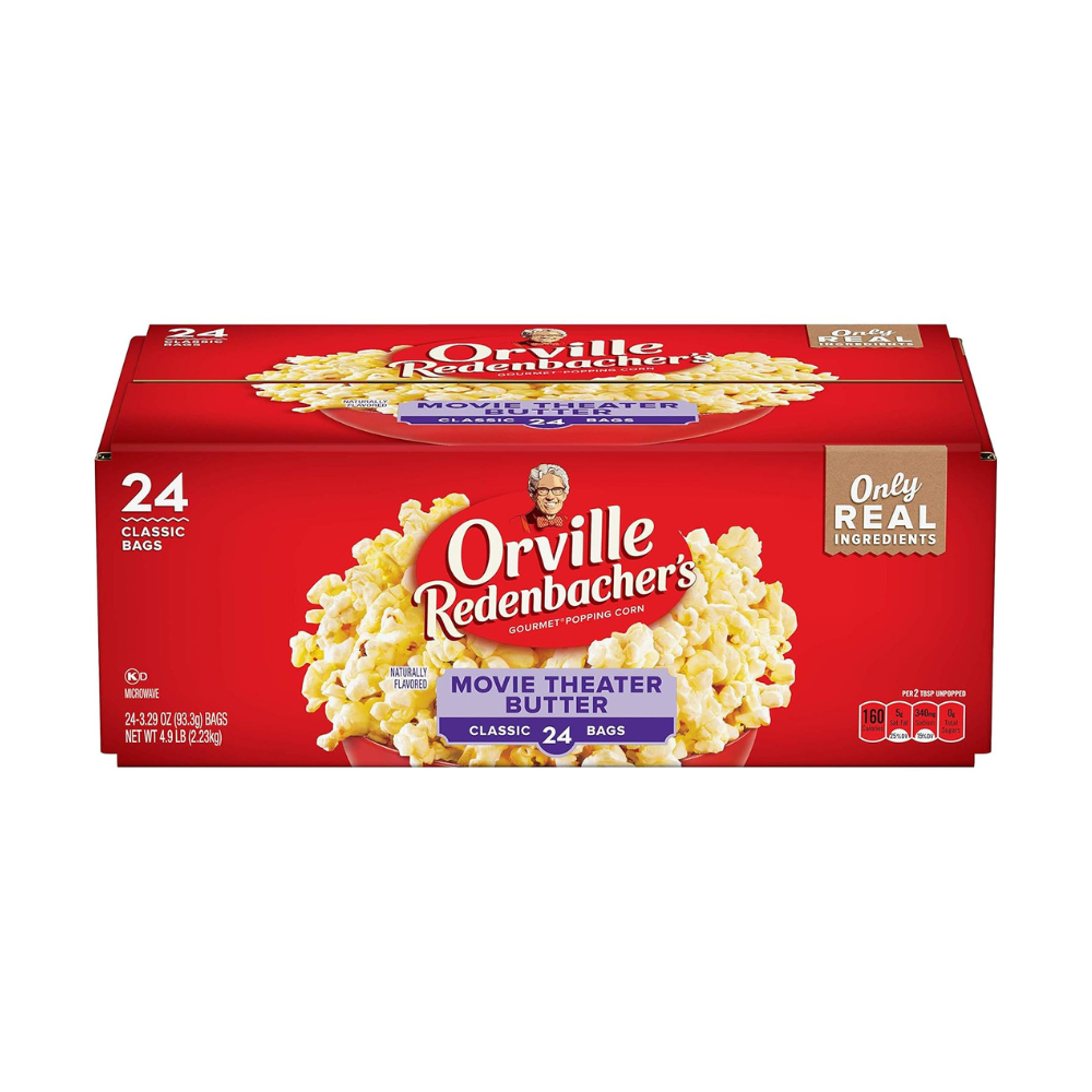 Introducing Orville Redenbacher’s Movie Theater Popcorn, the snack choice that turns your living room into a cinema. This delightful treat comes with twenty-four 3.29 oz. classic bags, ensuring you have enough to last through movie marathons and snack attacks alike.