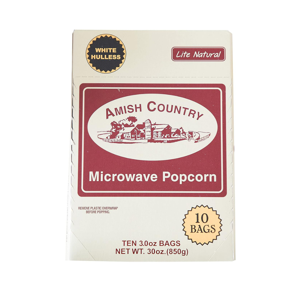 Introducing the Microwave Popcorn from Amish Country - your new go-to snack for movie nights or any time you crave something deliciously crunchy. Each pack comes with 10 bags of Lite Natural White Hulless Popcorn, perfect for those who appreciate a good pop without the hassle.